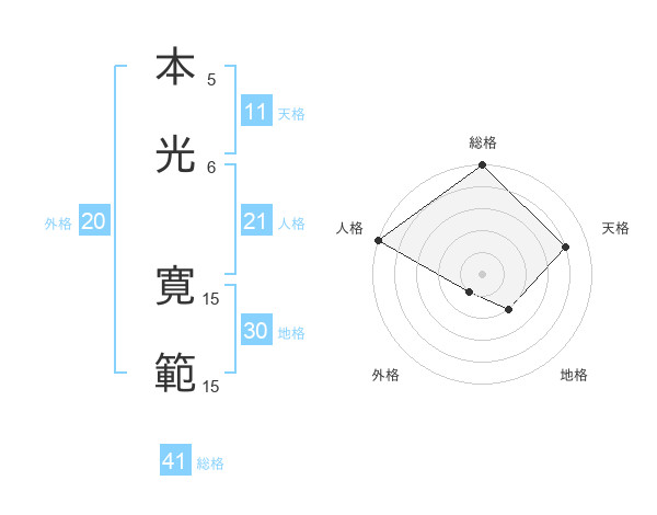 本光 寛範さんの総格は41画の5点!