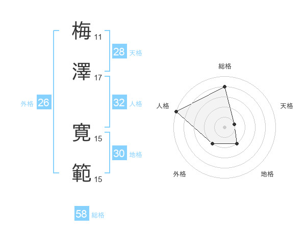 梅澤 寛範さんの総格は58画の4点!