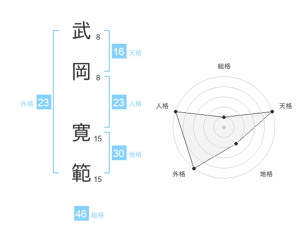武岡 寛範さんの総格は46画の1点!