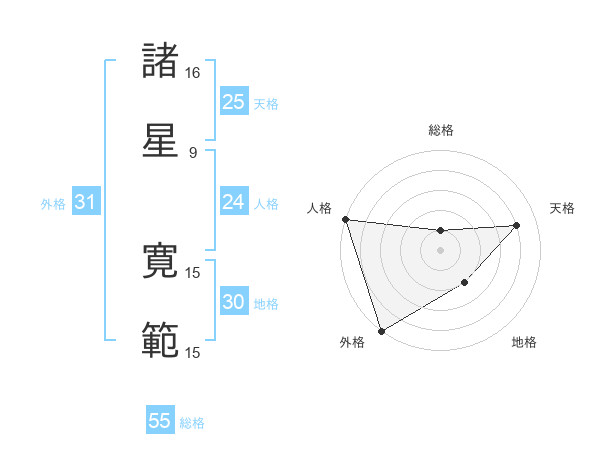 諸星 寛範さんの総格は55画の1点!