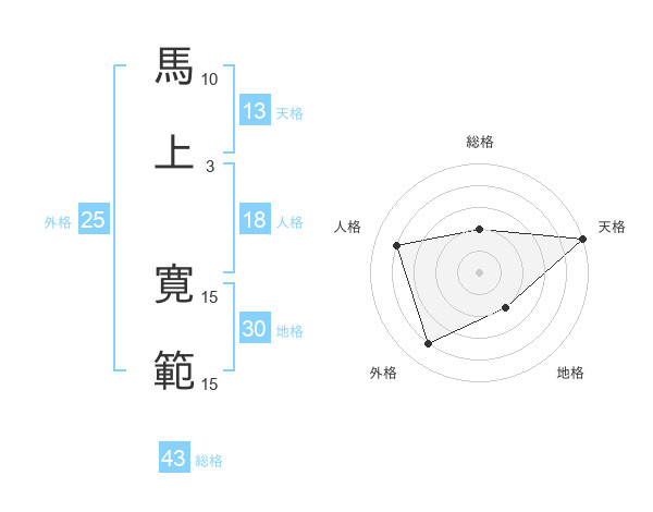 馬上 寛範さんの総格は43画の2点!