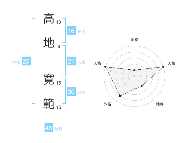 高地 寛範さんの総格は46画の1点!