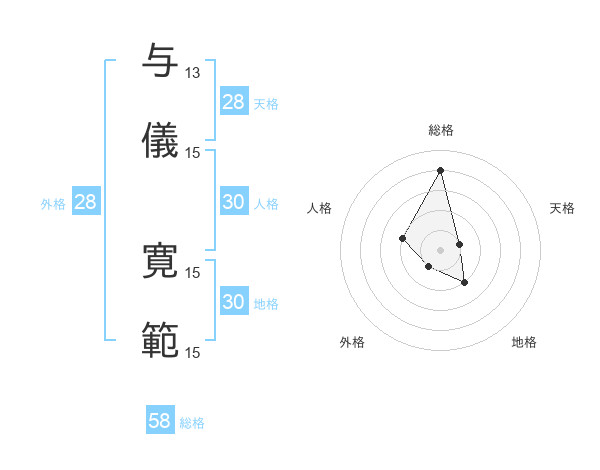 与儀 寛範さんの総格は58画の4点