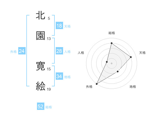 北園 寛絵さんを姓名の画数から五運を鑑定