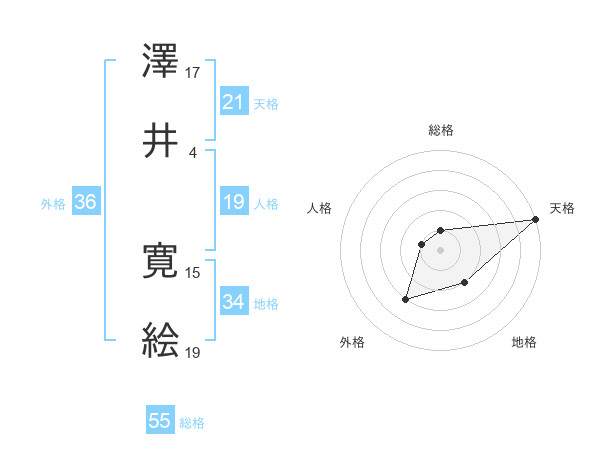 澤井 寛絵さんの天格は21画の5点!