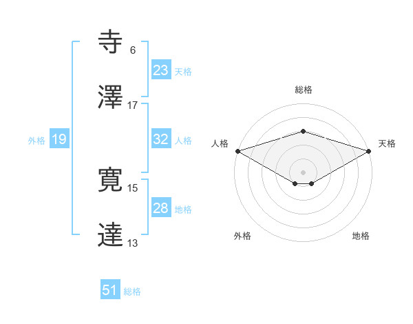 寺澤 寛達さんを姓名の画数から五運を鑑定