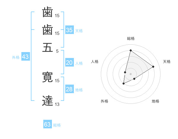 歯歯五 寛達さんの総格は63画の4点!