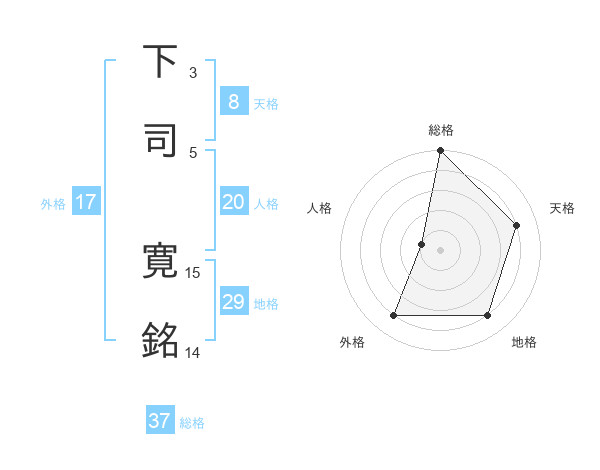 下司 寛銘さんの総格は37画の5点!
