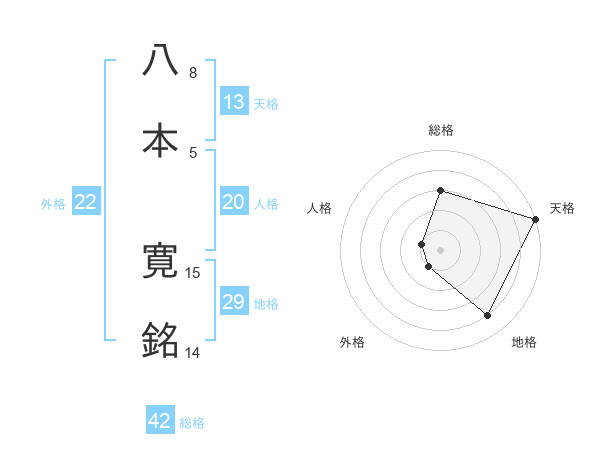 八本 寛銘さんの総格は42画の3点!