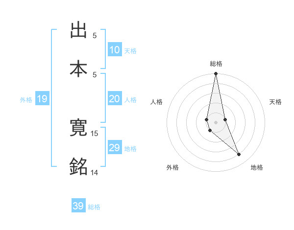 出本 寛銘さんの総格は39画の5点!