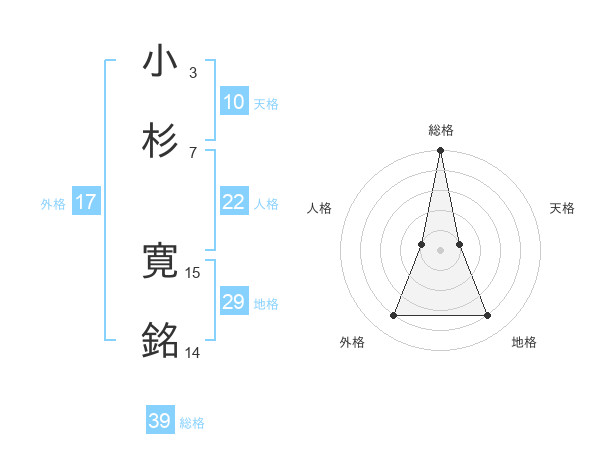 小杉 寛銘さんの総格は39画の5点!