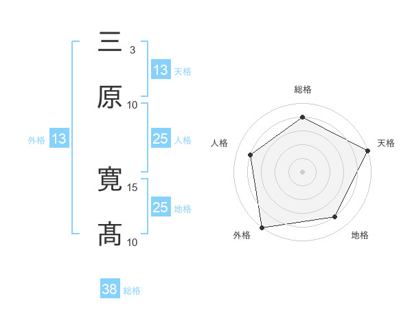 三原 寛髙さんの総格は38画の4点!