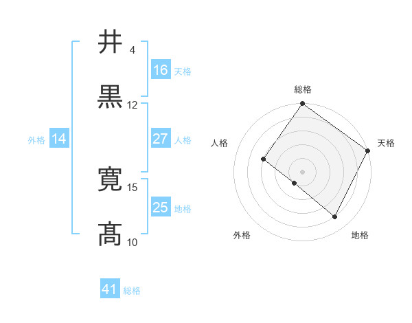 井黒 寛髙さんの総格は41画の5点!
