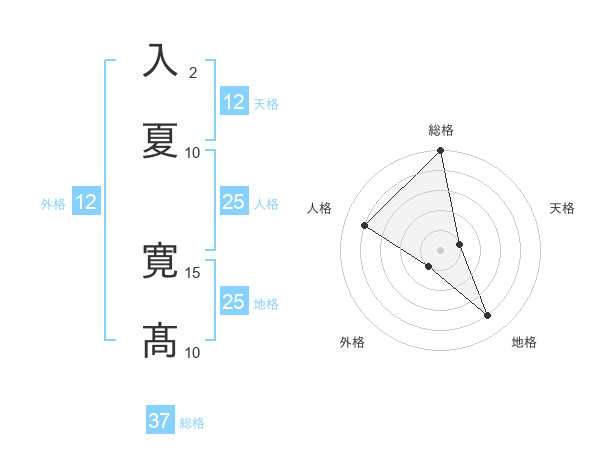 入夏 寛髙さんを姓名の画数から五運を鑑定