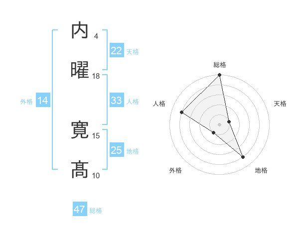 内曜 寛髙さんの総格は47画の5点!