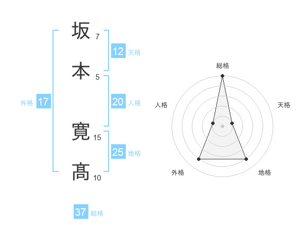 坂本 寛髙さんの総格は37画の5点!