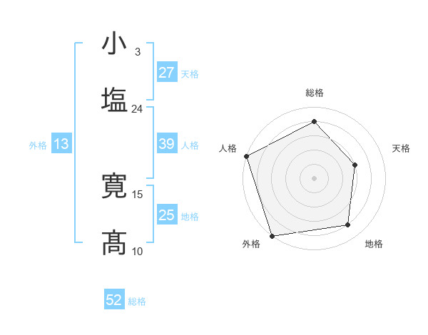 小塩 寛髙さんを姓名の画数から五運を鑑定