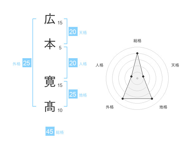 広本 寛髙さんの総格は45画の4点!