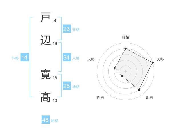 戸辺 寛髙さんの総格は48画の4点!
