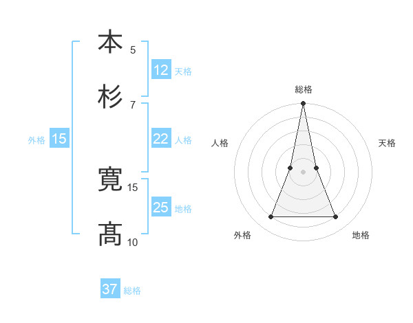 本杉 寛髙さんを姓名の画数から五運を鑑定