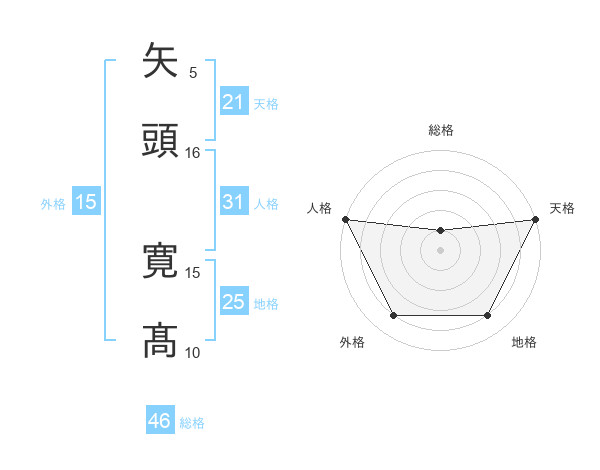 矢頭 寛髙さんの天格は21画の5点!