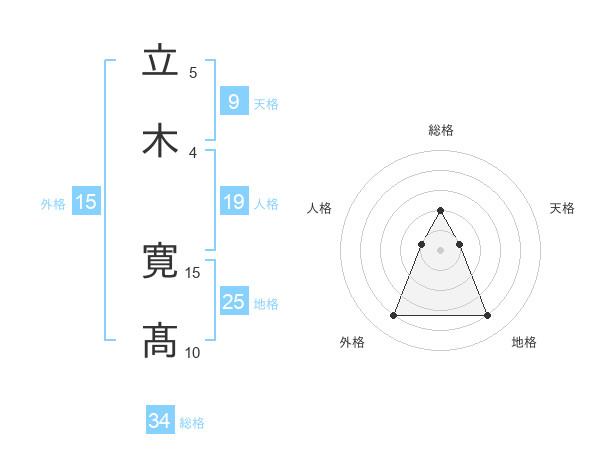 立木 寛髙さんの総格は34画の2点!