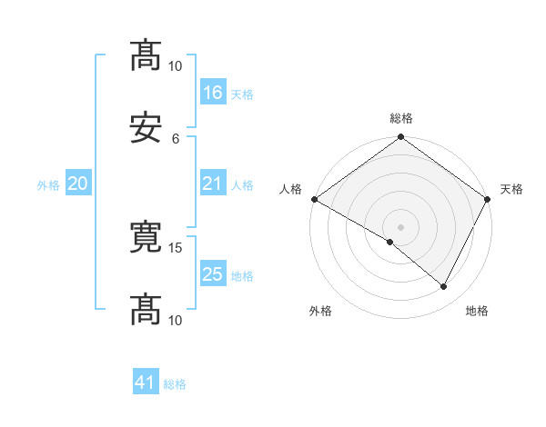 髙安 寛髙さんの総格は41画の5点!