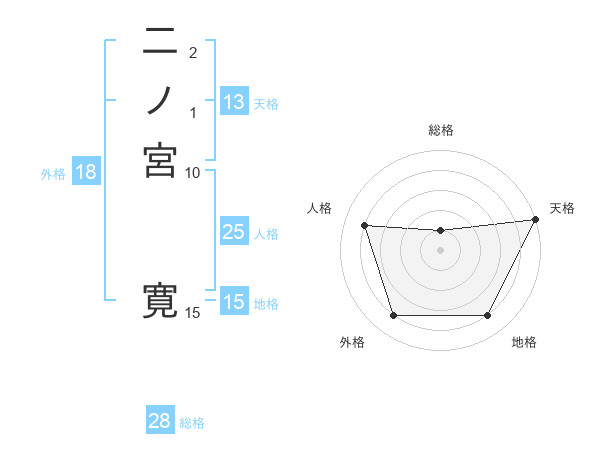 二ノ宮 寛さんの天格は13画の5点!