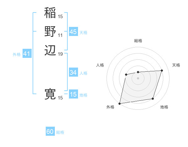 稲野辺 寛さんの地格は15画の4点!