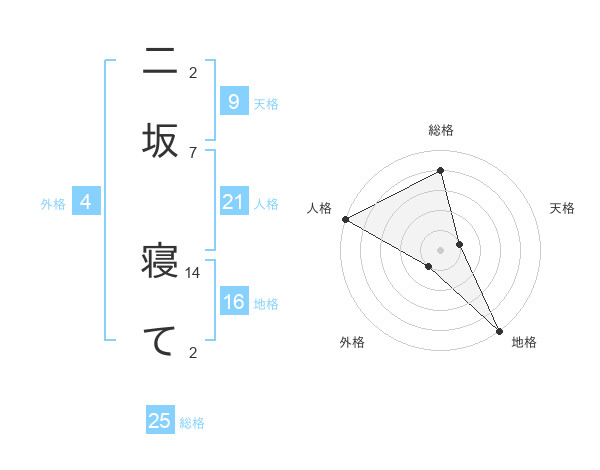 二坂 寝てさんの総格は25画の4点!
