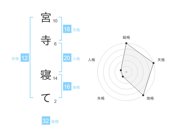 宮寺 寝てさんの天格は16画の5点