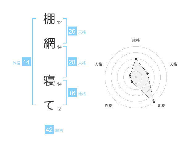 棚網 寝てさんを姓名の画数から五運を鑑定
