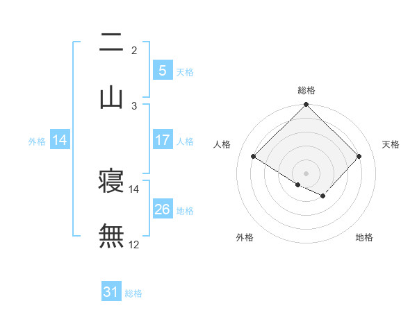 二山 寝無さんの総格は31画の5点!