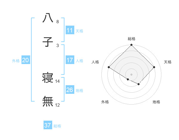 八子 寝無さんの総格は37画の5点!
