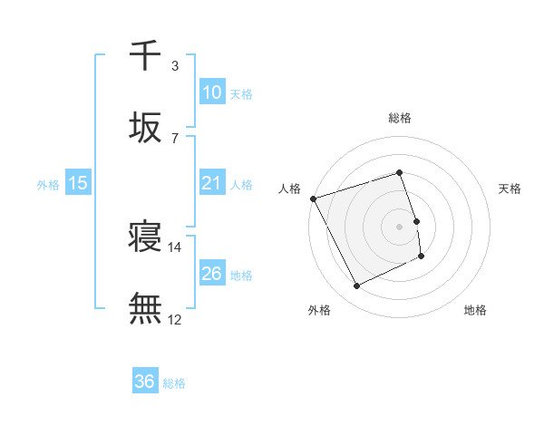 千坂 寝無さんを姓名の画数から五運を鑑定
