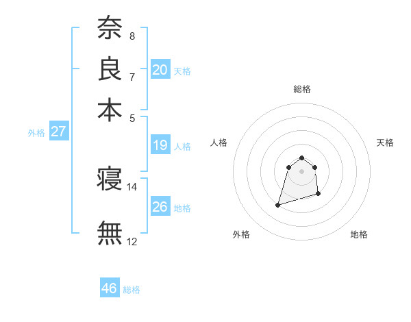 奈良本 寝無さんを姓名の画数から五運を鑑定
