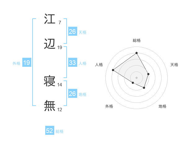 江辺 寝無さんの総格は52画の4点!