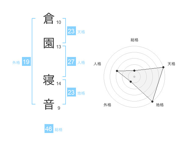 倉園 寝音さんの天格は23画の5点!
