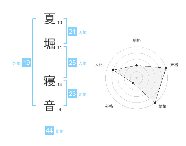 夏堀 寝音さんの総格は44画の2点!