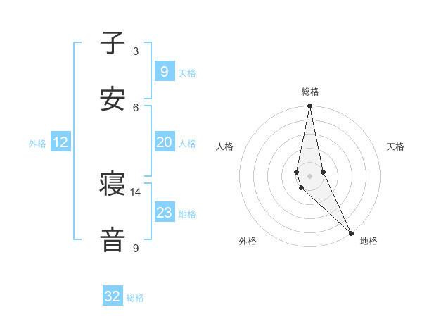 子安 寝音さんの総格は32画の5点!