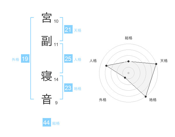 宮副 寝音さんの天格は21画の5点!