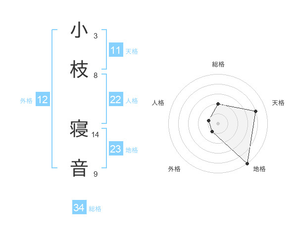 小枝 寝音さんの外格は12画の1点!