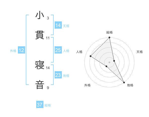 小貫 寝音さんを姓名の画数から五運を鑑定