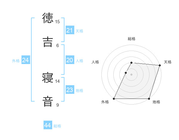 徳吉 寝音さんの天格は21画の5点!