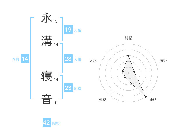 永溝 寝音さんを姓名の画数から五運を鑑定