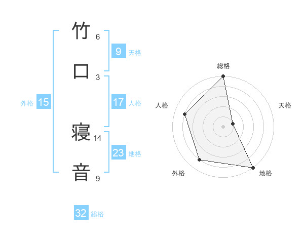 竹口 寝音さんの総格は32画の5点!