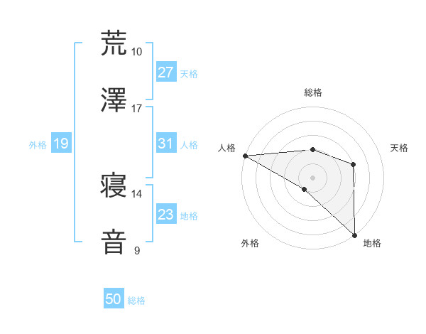 荒澤 寝音さんの総格は50画の2点!
