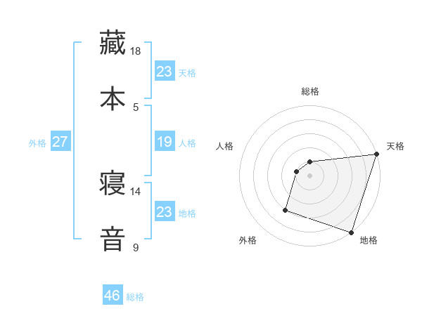 藏本 寝音さんの天格は23画の5点!