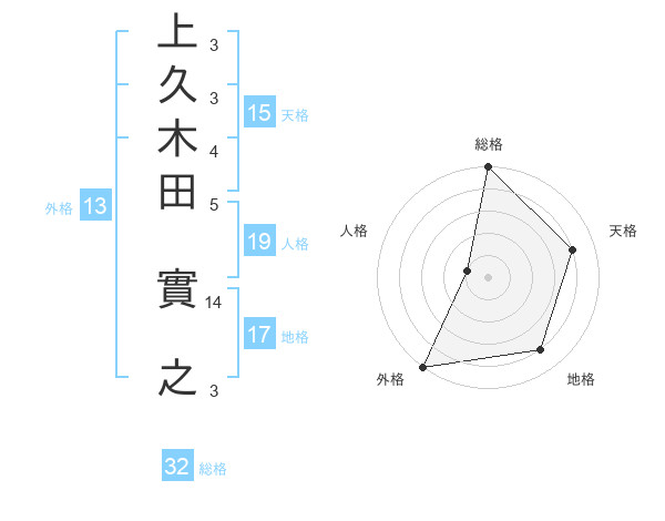 上久木田 實之さんの外格は13画の5点!