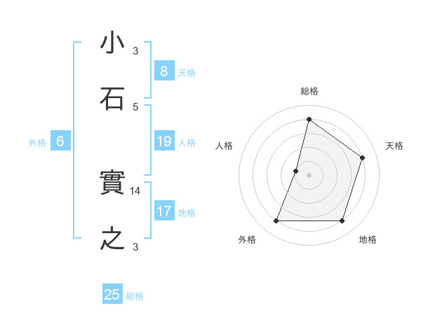 小石 實之さんの天格は8画の4点!